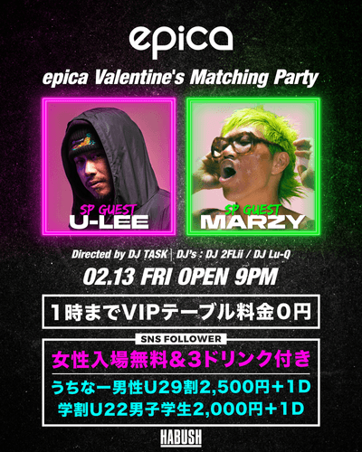 おもしろい特別ゲストにU-LEEとMARZYを迎えた『epica Valentine's Matching Party』が開催